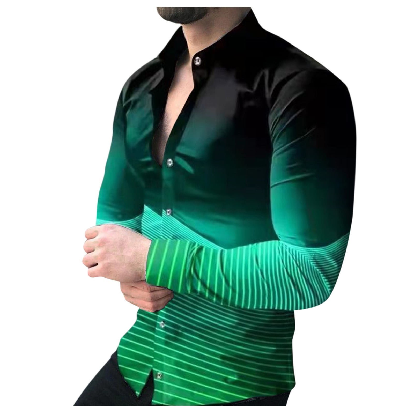 Wendunide Shirts For Men Men Spring Lightweight Comfortable Lapel Colorful Print Casual Plus Size Beach Long Sleeve Shirt Mint Green Walmart Com